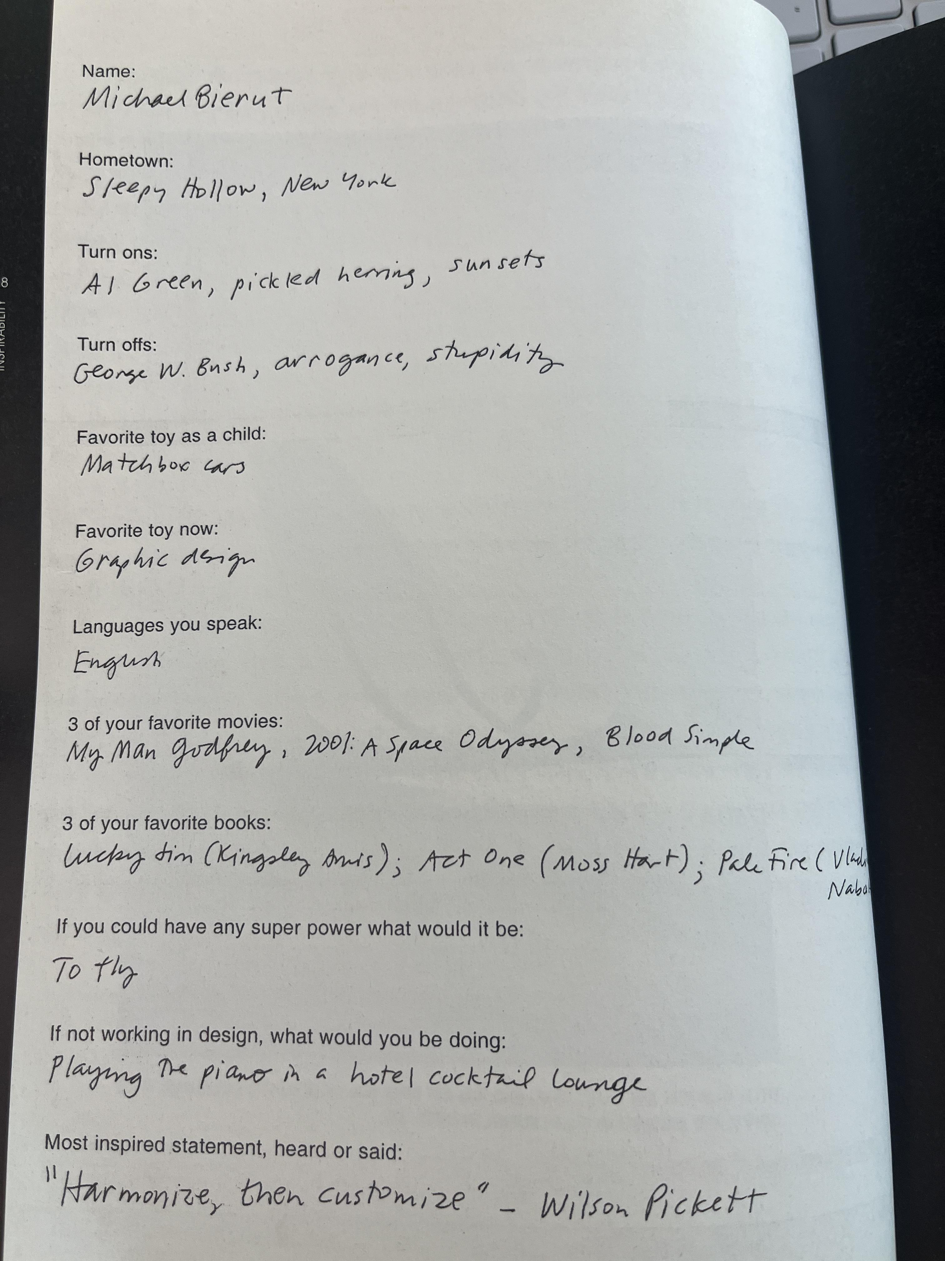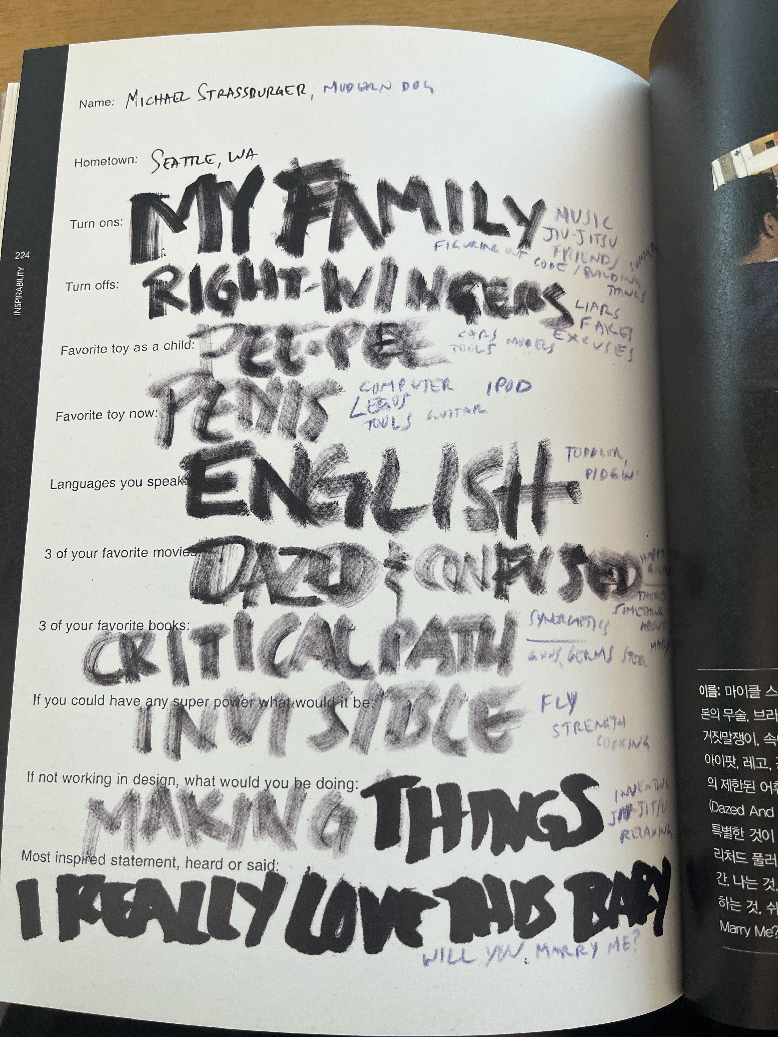 그래도 내가 가장 좋아하는 인물, 마이클 베이루트가 첫번째로 실려 더욱 호감이 갔다. 그리고 역시나 밀튼 글레이저가 등장한다. 각 디자이너들의 작품을 보며 내 취향인 디자이너를 찾고, 그들의 인터뷰를 골라보는 재미가 있다.