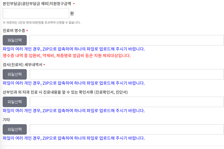 구비 서류 : 임신확인서, 진료비 영수증, 진료비 세부내역서